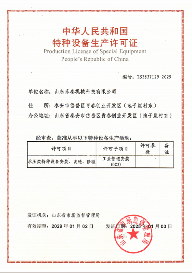 山東樂泰機(jī)械科技有限公司始建于2013年,是一家股份制高新技術(shù)企業(yè),擁有140多名各類中高級技術(shù)和技能人才,購置了大型激光切割機(jī)等先進(jìn)生產(chǎn)設(shè)備和粗糙度檢測儀等精密檢測設(shè)備。公司具有D級壓力容器的設(shè)計及制造資質(zhì),通過了ISO9001質(zhì)量管理體系認(rèn)證和3C認(rèn)證。 公司專注于中厚板及薄壁不銹鋼非標(biāo)儲罐、發(fā)酵罐、種子罐、臥式結(jié)晶機(jī)、立式結(jié)晶罐、提取罐、雙層酒精罐、沉降罐、流化床等干燥系統(tǒng)設(shè)備的設(shè)計及制造。我們致力于為淀粉糖、生物發(fā)酵、制藥、釀酒、調(diào)味品、飲料、果蔬汁、乳制品、大豆分離蛋白、酶制劑、樹脂吸附等領(lǐng)域提供不銹鋼成套裝備。多年來,我們已經(jīng)為全國百家客戶提供了服務(wù),并成功出口產(chǎn)品到法國、智利、美國、土耳其和越南等國家。